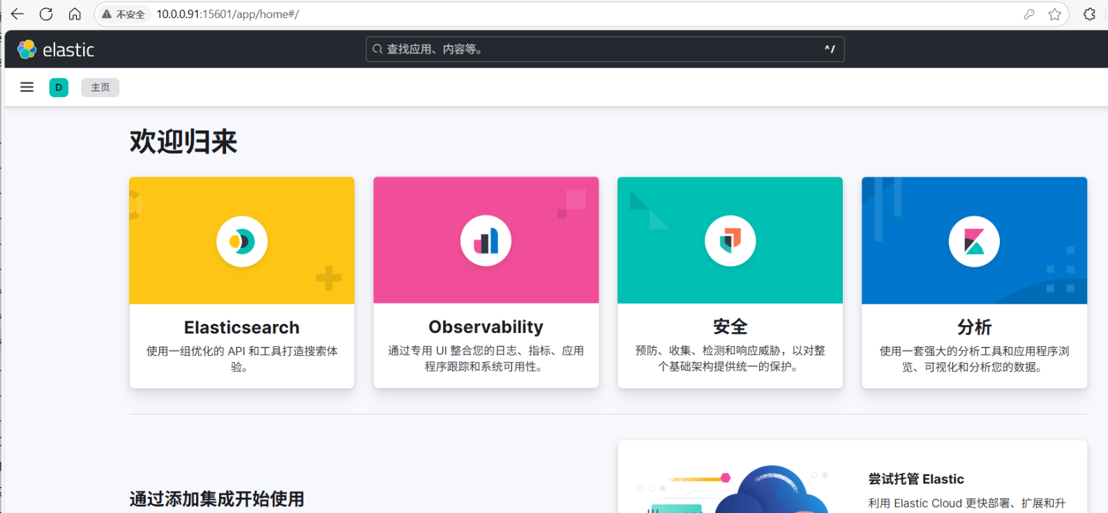 [root@elk91 ~]# docker restart kib01稍等片刻,再次刷新 Kibana 页面,你就会看到熟悉的中文界面了。