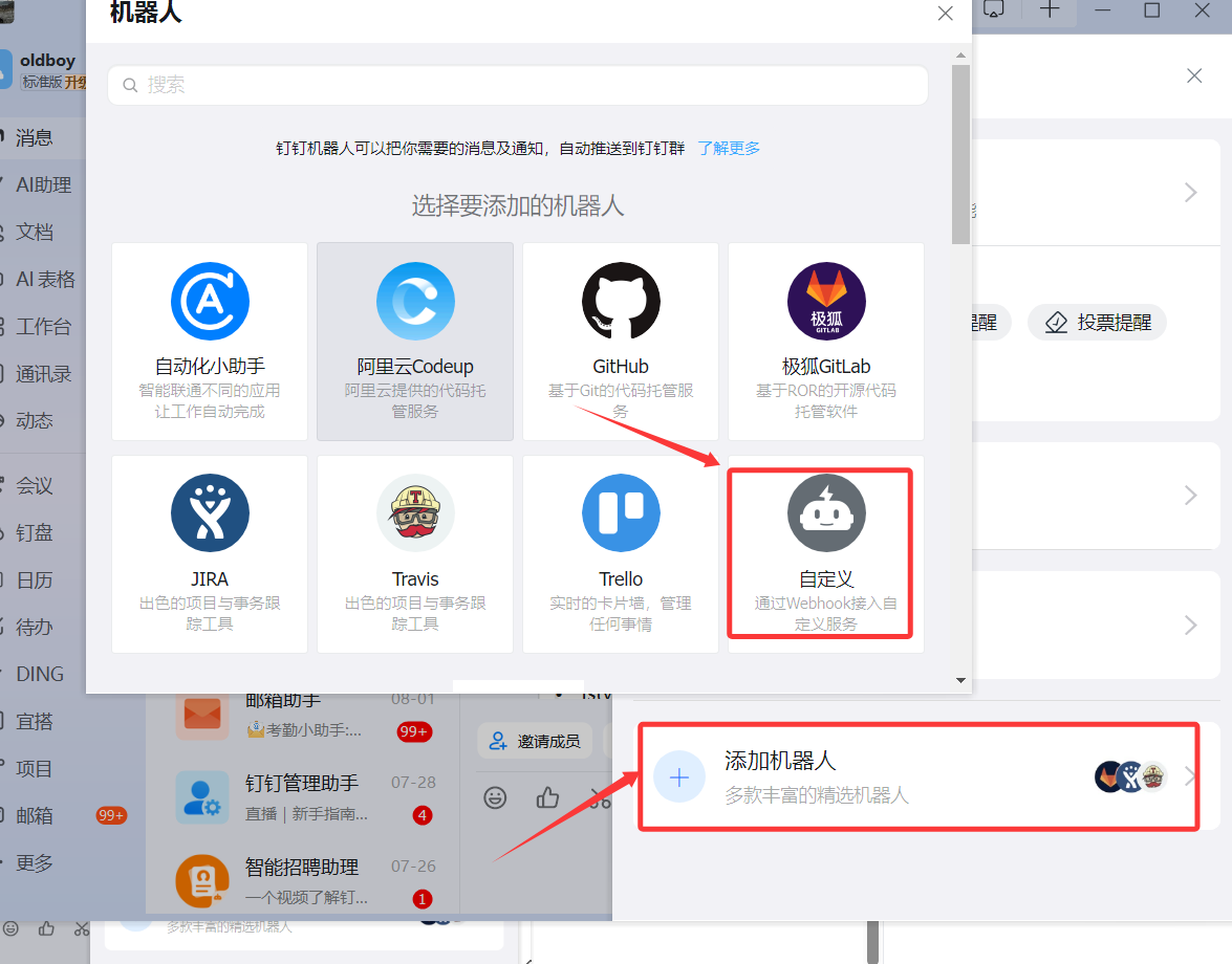 选择 “自定义” 机器人。