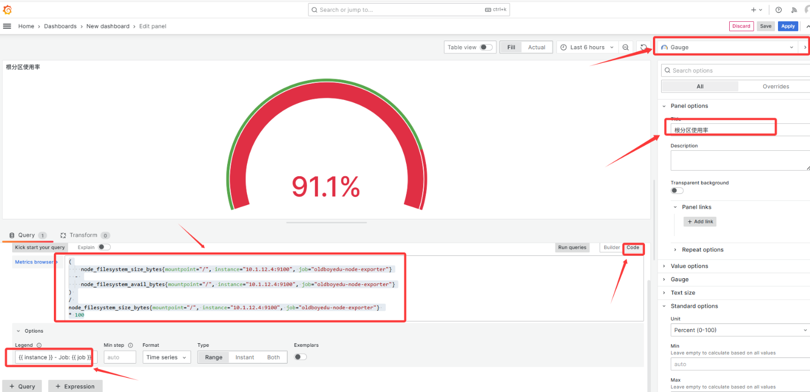 默认情况下,Grafana 会显示非常长的图例信息,我们可以把它格式化得更清晰。在查询编辑器的 Legend 字段中,输入以下格式化字符串: