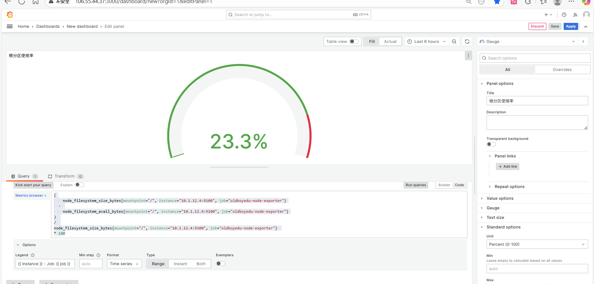 Node Exporter (数据采集): 部署在被监控服务器上(如 10.1.12.15, 10.1.12.3, 10.1.12.4),负责采集包括磁盘使用率在内的系统指标。