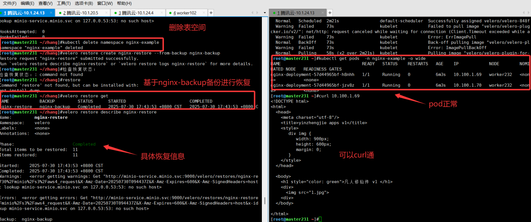 velero restore getSTATUS 很快也变成了 Completed。我迫不及待地去检查结果。